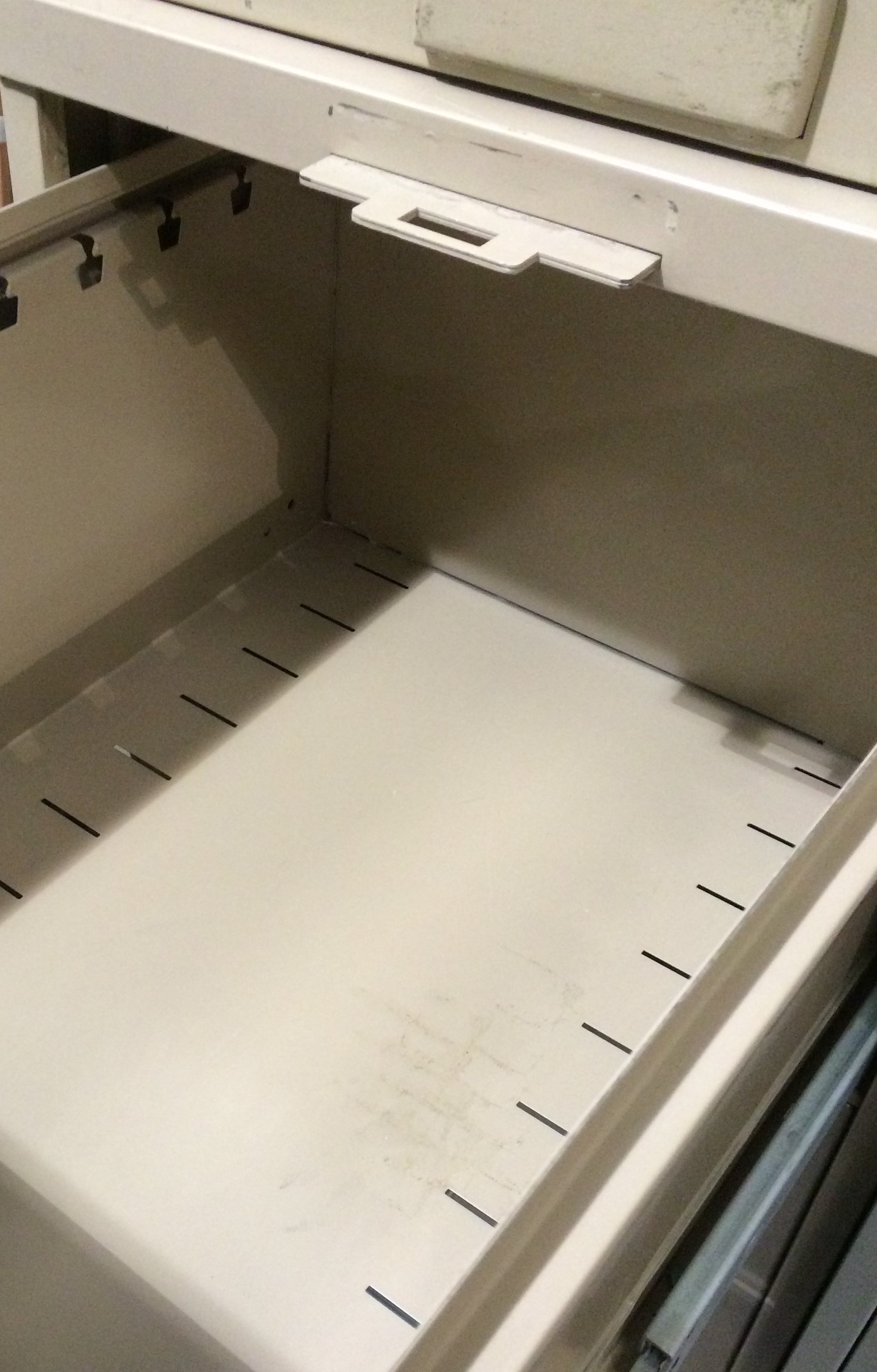 Takes foolscap suspension files (as well as the customary two glasses and a bottle of Scotch).