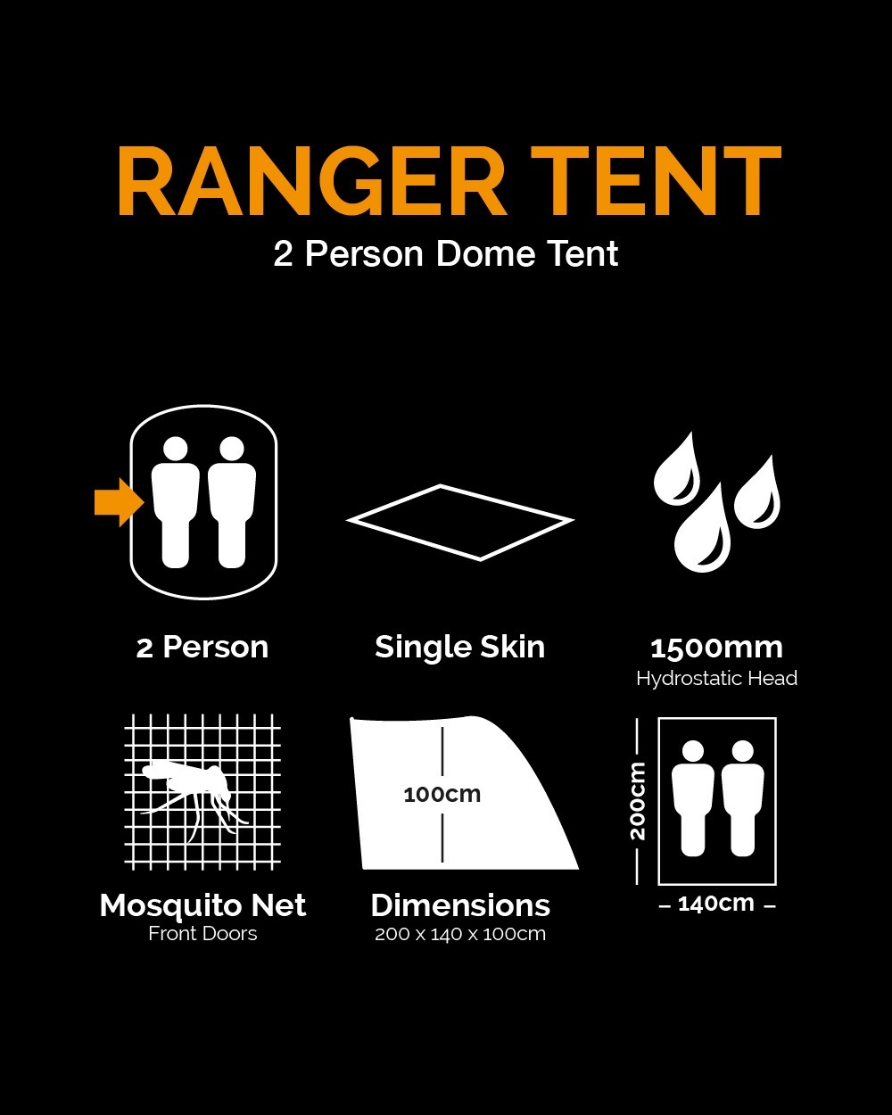The Ranger Tent is a practical two person dome tent with a single skin which is ideal for expeditions and comfortable camping. It is incredibly light weight and most importantly packs down to a size that won't slow you down.